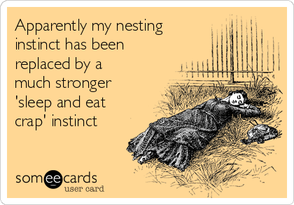 Spread out your nesting goals and delegate as many tasks to your partner as you can. Make a to-do list for them if it helps. The end of the second trimester/beginning of the third is probably the last chance you’ll get to do a solid deep clean until… well jury’s still out on that one. Probably till your last born graduates.
